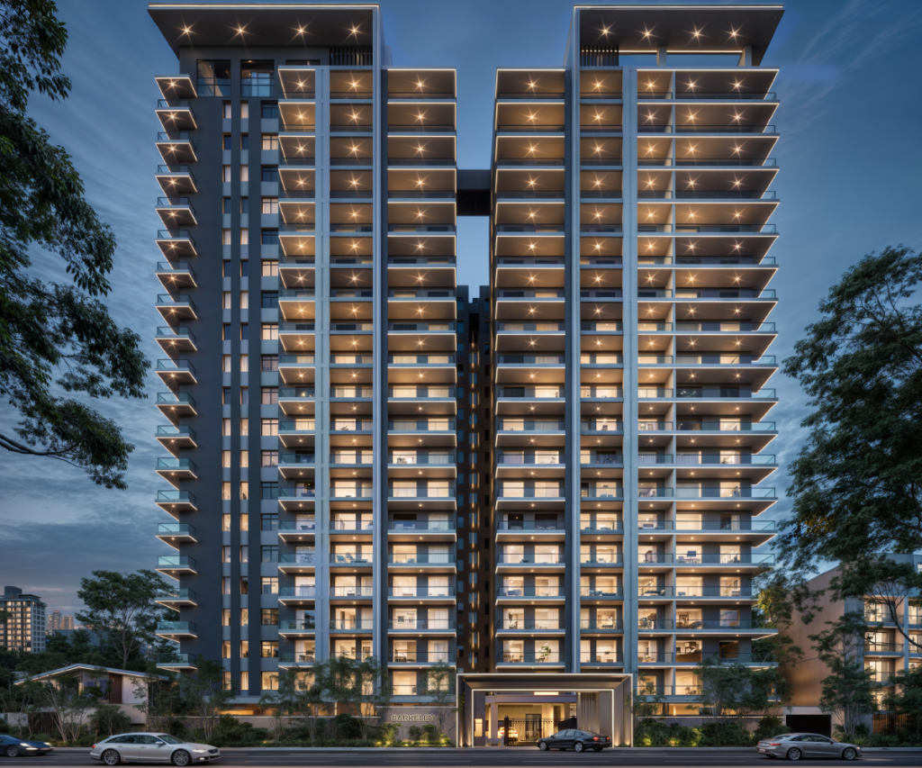 What amenities are included at Berkeley Homes? The development features a rooftop swimming pool, a rooftop gym, a residents’ lounge, a patio gaming zone, an on-site café, and a full backup generator.