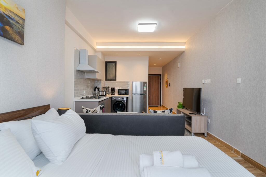 This premium studio apartment is offered completely fully furnished and fully serviced, making it an incredible value at just KES 115,000 per month. By perfectly combining stunning external architecture with bespoke, high-quality interior design, this development delivers a five-star hotel experience with the warmth and privacy of a personal home. It is the ultimate hassle-free urban sanctuary for the modern professional, frequent business traveler, or expatriate.