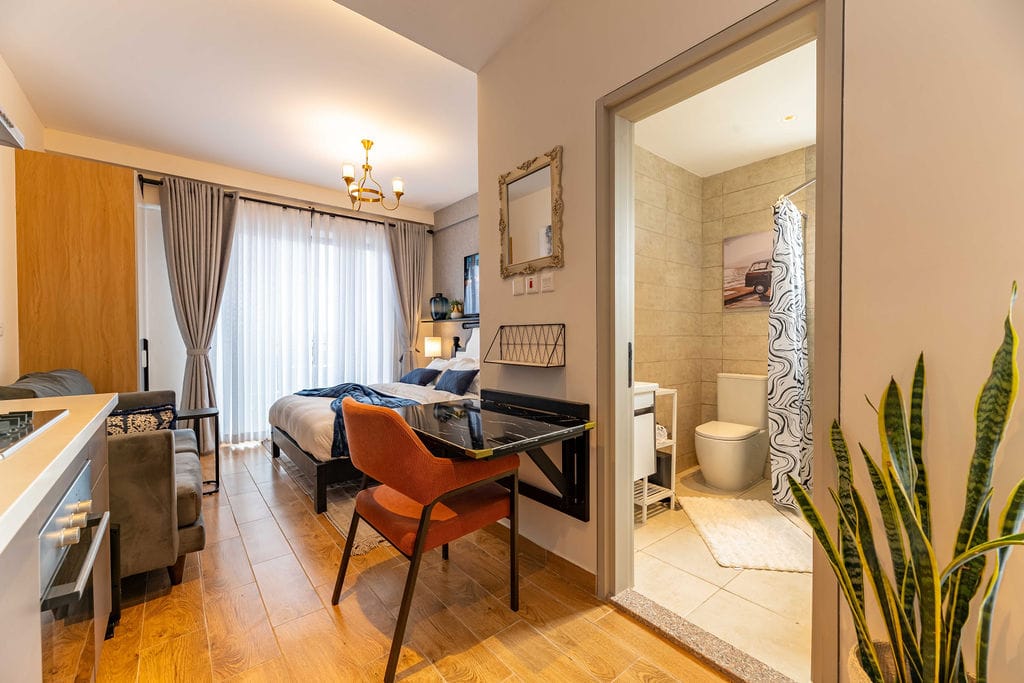 - The Living & Sleeping Zone: Outfitted with bespoke, contemporary furnishings, a plush premium bed, and a smart TV. The high-floor elevation ensures the space remains exceptionally quiet and flooded with natural light.